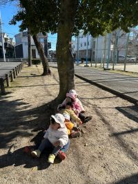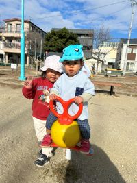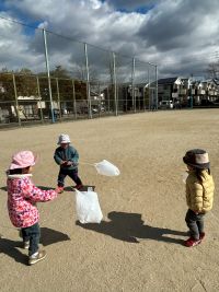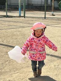 ビニールの凧をはしってとばしたり、みんなでくっついて、あったかいねーとほほえましい姿をみせてくれました