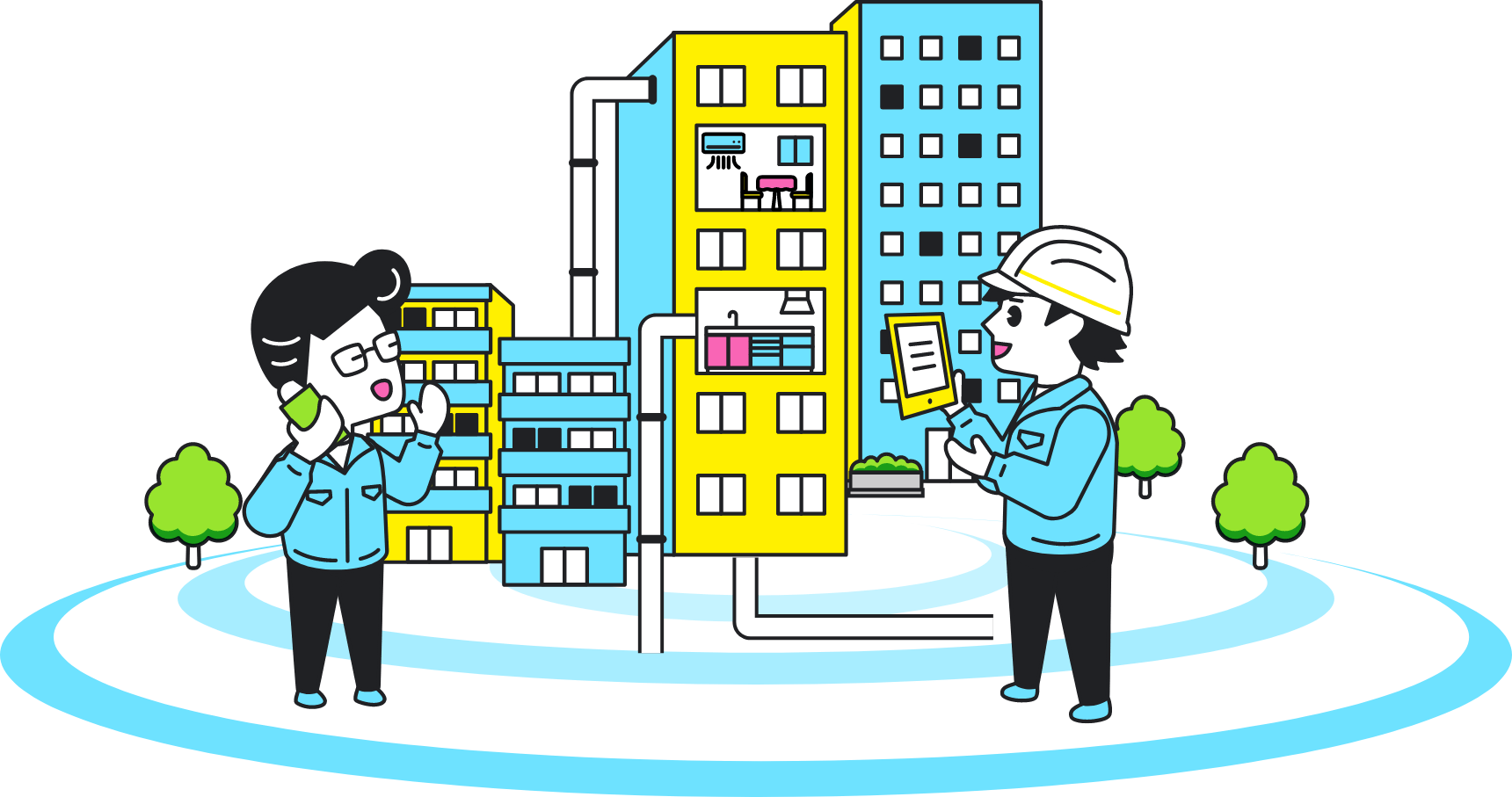 工事が完了したら適切に施工されているか検査を行います。検査項目は10種類くらいあり、全居室をまわって、水が出る箇所からすべてちゃんと水が出るかをチェックします。まずは自主検査を行い、検査シートを渡して改めて検査を受けるため、検査だけで2~3ヶ月くらいかかることもあります。