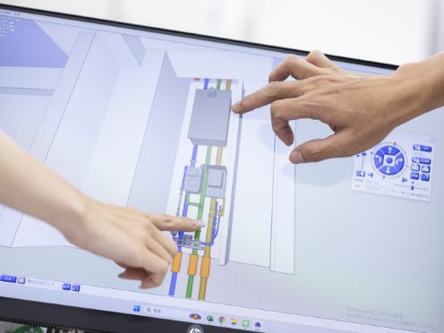 ゼネコンが用意した建築施工図をもとに、設備施工図(具体的な施工方法・材料・寸法などを記した図面のこと)を作成します。基本的にはベトナムの現地法人が設備施工図を書いてくれるため、実際の業務は作図依頼と上がってきた図面のチェックが中心ですが、勉強のために自分で設備施工図を作成することもあります。