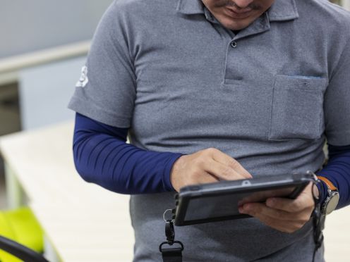 工事が始まると予定通り工事が進むように現場で管理を行います。進捗に遅れはないか、正しい材料が正しく使われているか、図面通りに施工できているか、写真を撮りながら確認します。施工管理職の社員にはスマートフォンやタブレットを支給しており、現場管理アプリを使って管理しています。
